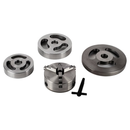 El kit incluye: Portabrocas de 3 mordazas # 60040, placa de respaldo de 12” #60042, placa de respaldo de 9.625” #60043, placa de respaldo de 7.813” #60045 y llave de portabrocas #60044