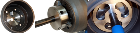 El kit completo elimina la necesidad de varios conos de centrado y copas de sujeción con tres enormes mandíbulas expansivas y 3 placas de respaldo de alta resistencia. Cuatro piezas hacen el trabajo de muchos con una gama que cubre tambores y rotores sin buje con grandes diámetros de orificio central de 5,275” a 10,2”